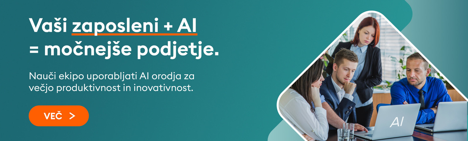Pripravimo prilagojene izobraževalne programe glede na panogo, cilje in naravo dela zaposlenih. Svetujemo pri izbiri orodij, izobražujemo ekipe in nudimo podporo pri implementaciji – da se AI rešitve čim prej zaživijo v praksi.
